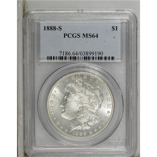 1888-S S$1 MS64 PCGS. A lovely sheen encompasses the b