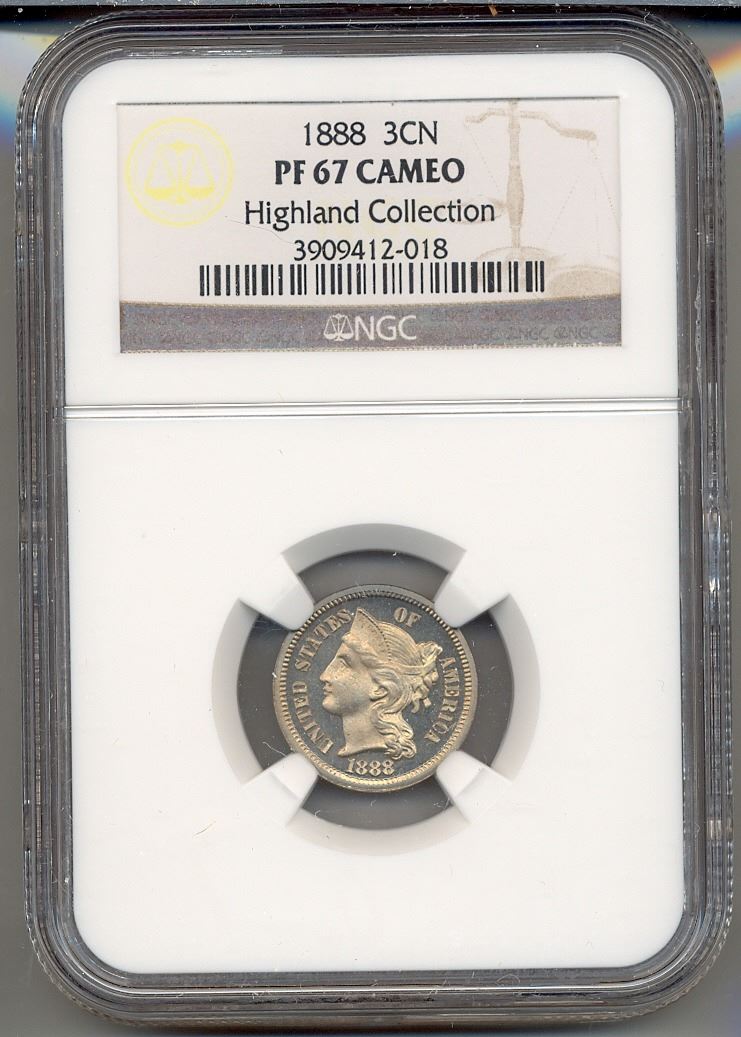 One 1888 Three Cent Coin NGC PF67 Cameo.