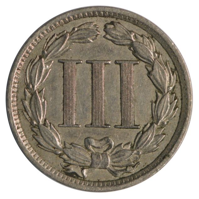One 1888 Three Cent Nickel Coin.