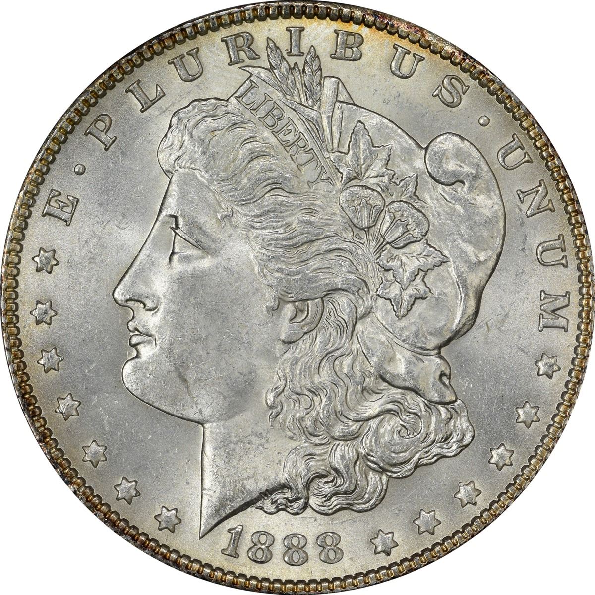 This largely brilliant and sharply struck Morgan enjoys aa faint whisper of pale satiny golden iridescence throughout. Die clash marks are noted at Liberty’s lips and below her chin near the juncture with her neck, and in both sides of the reverse wreath. An altogether pleasing example of a scarce VAM variety. PCGS #7182