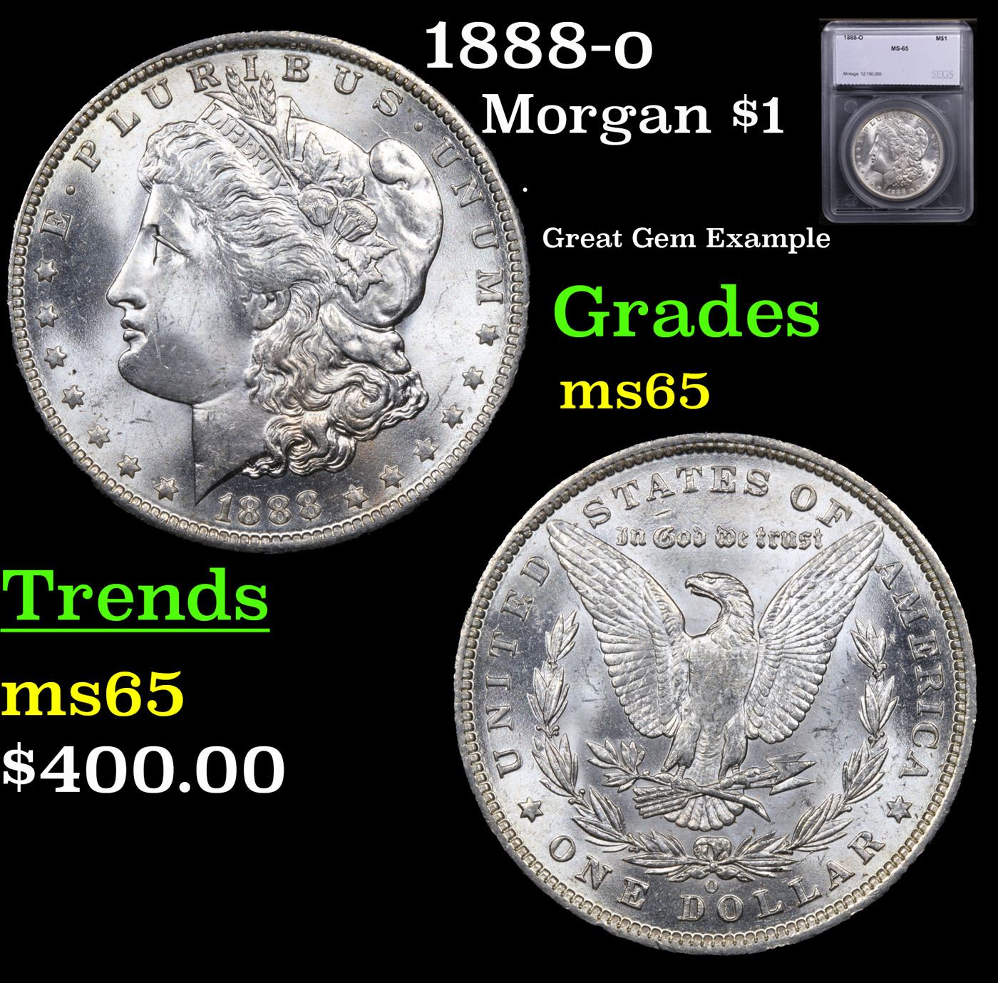 1888-o Morgan Dollar $1 Graded ms65 By SEGS.