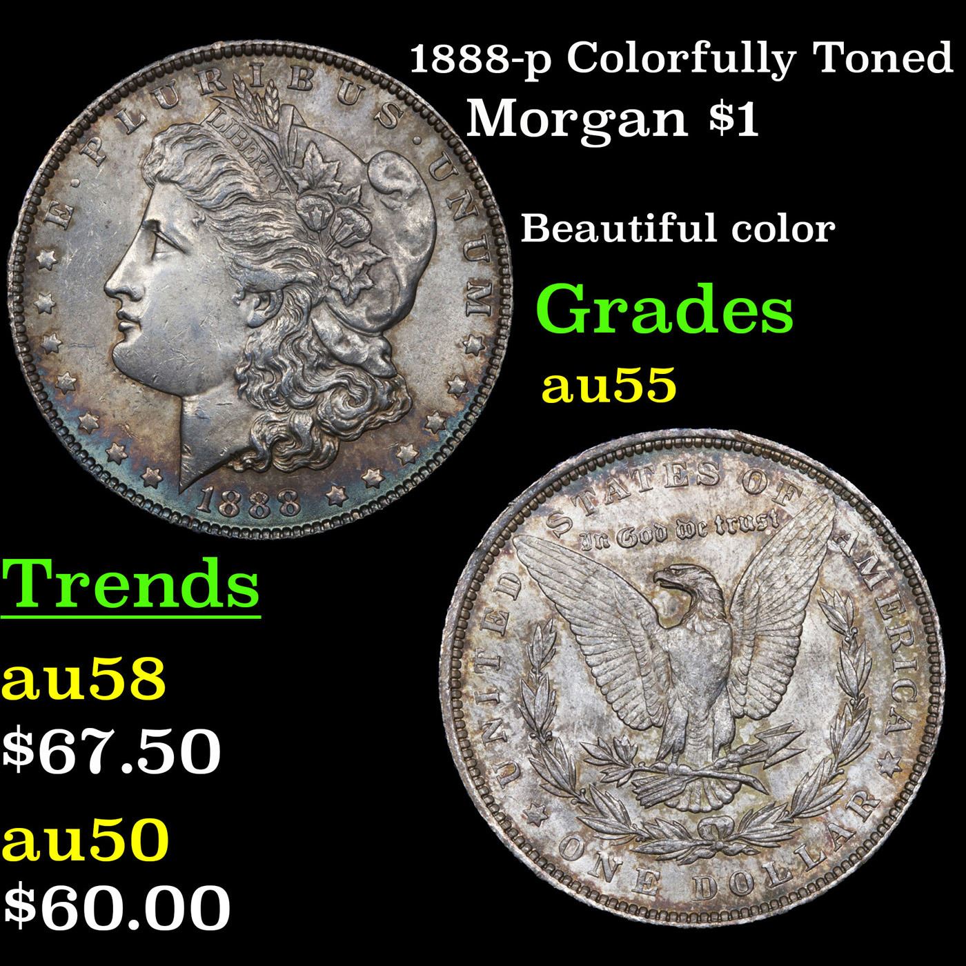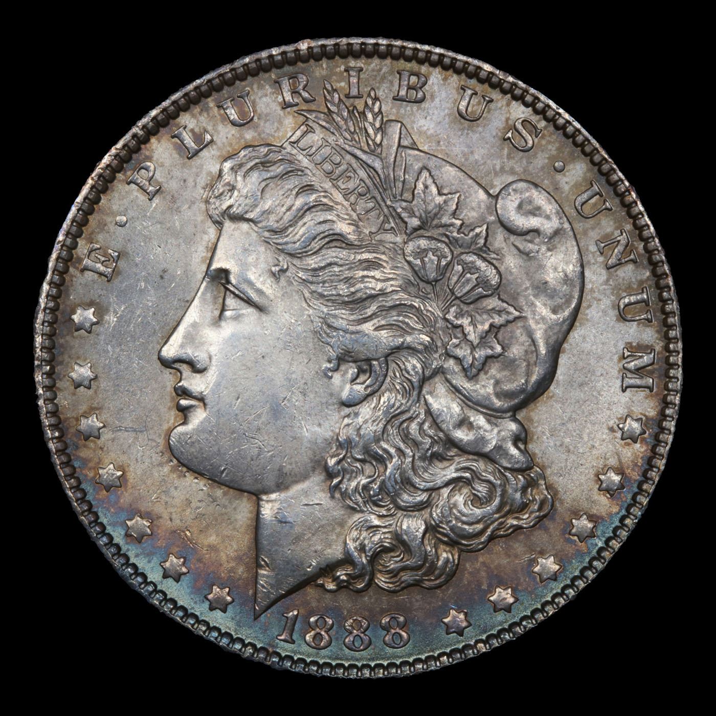 1888-p Colorfully Toned Morgan Dollar $1 Grades Choice AU.