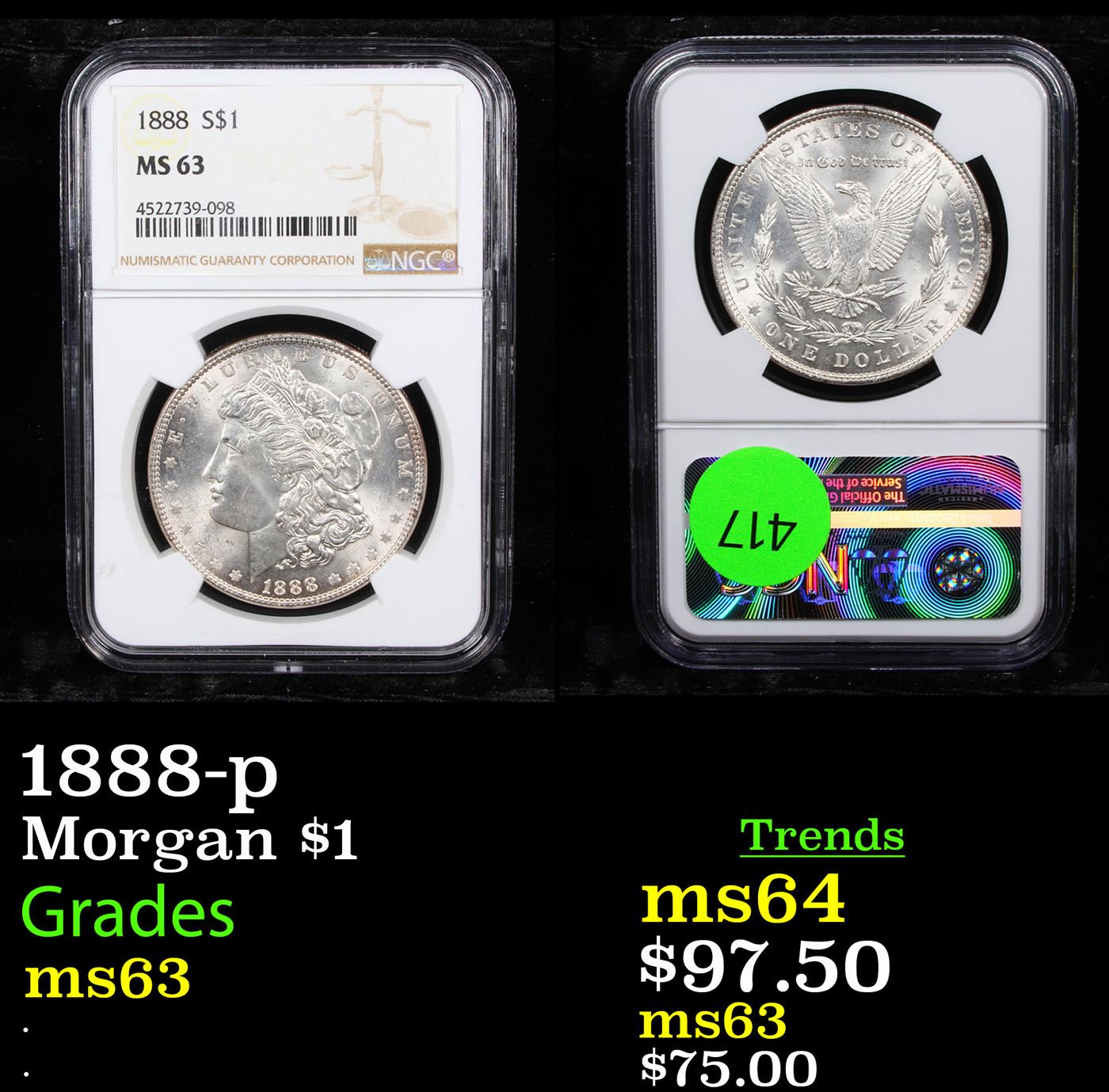 1888-p Morgan Dollar $1 Graded ms63 By NGC.   0