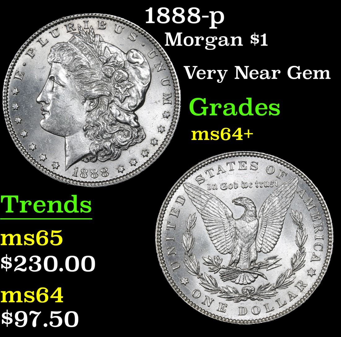 1888-p . Very Near Gem Morgan Dollar $1 Grades Choice+ Unc.