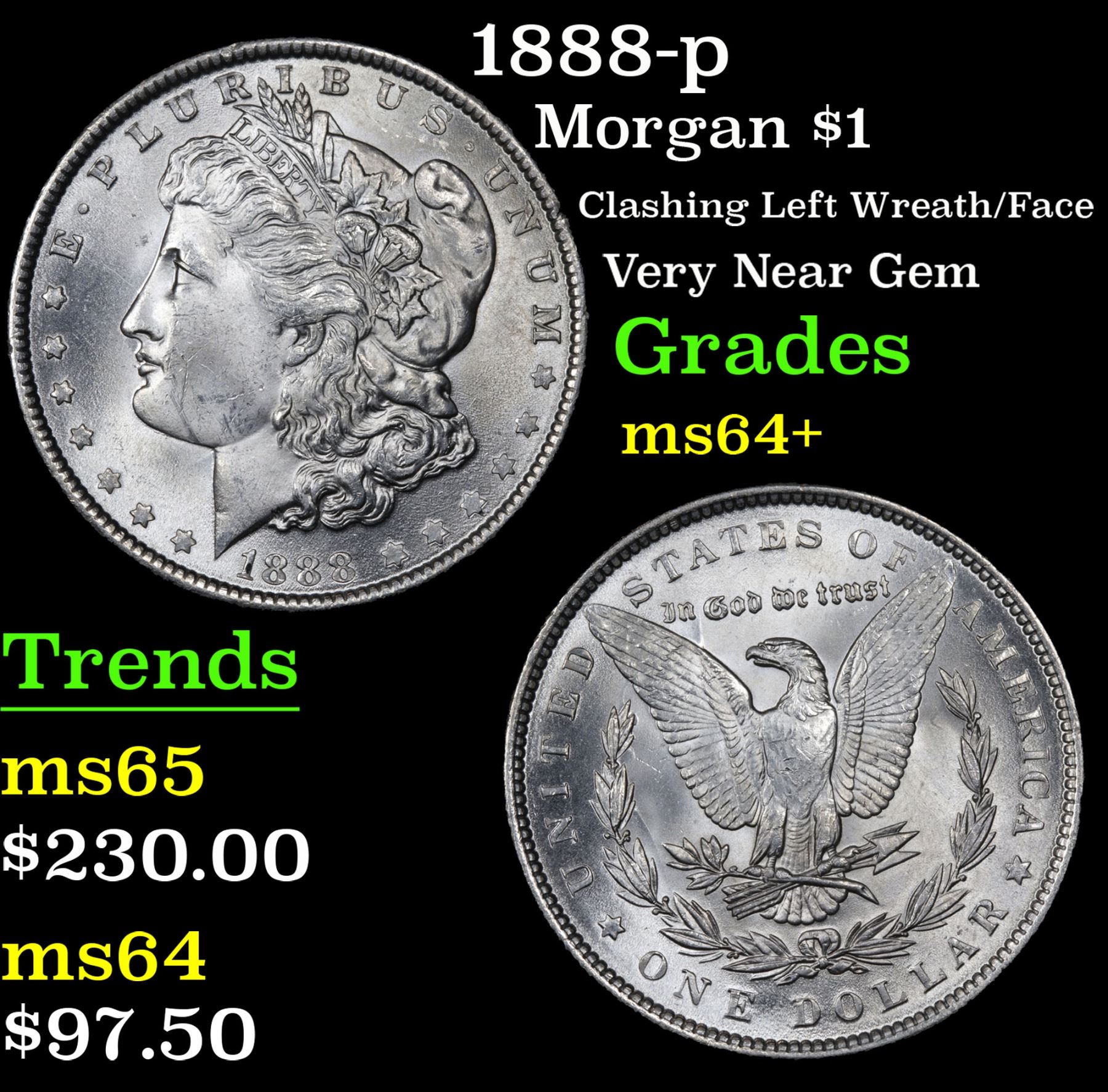 1888-p Clashing Left Wreath/Face Very Near Gem Morgan Dollar $1 Grades Choice+ Unc. A Corey's Pick