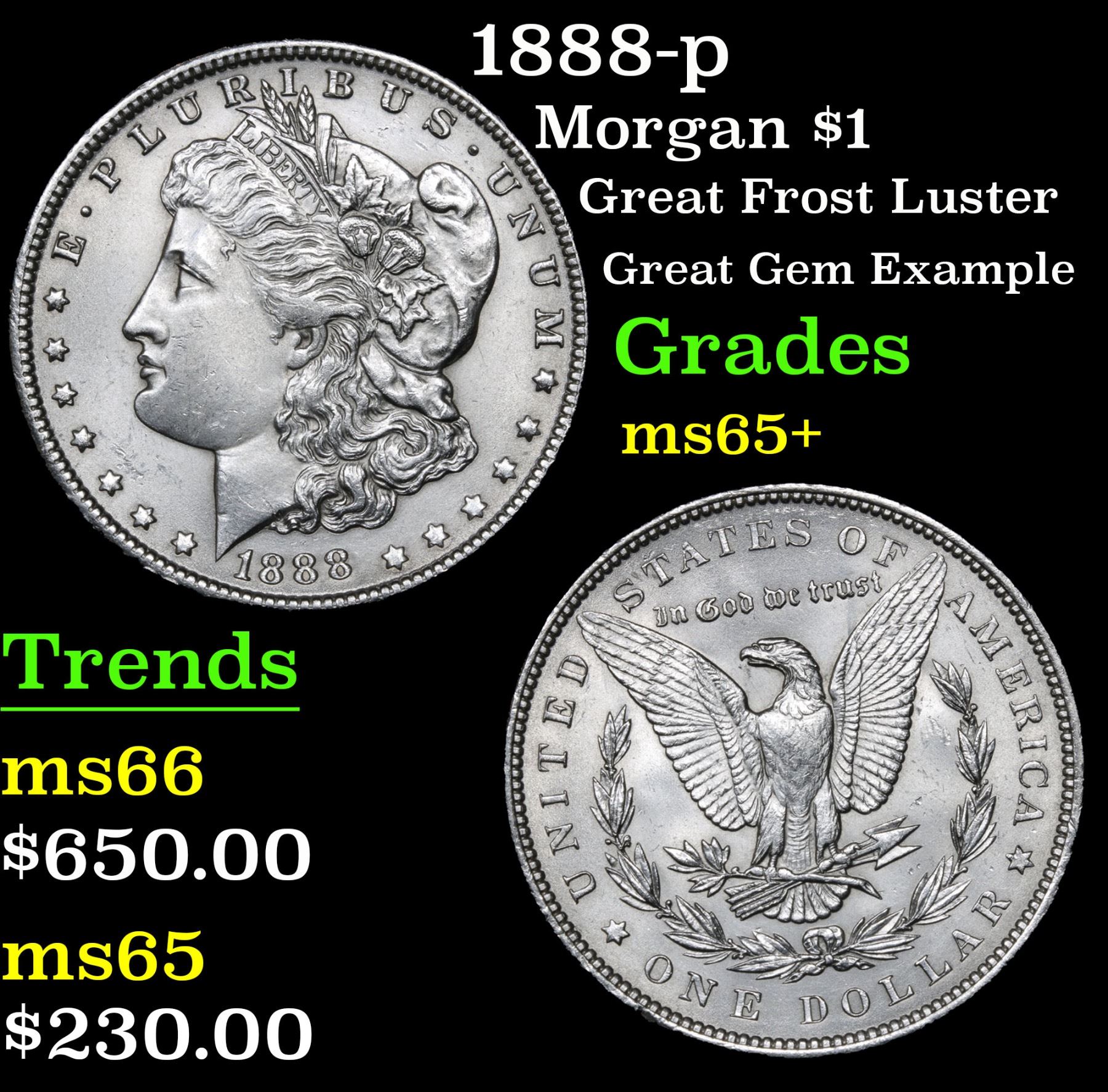 1888-p Morgan Dollar $1 Grades GEM+ Unc. Great Frost Luster Great Gem Example A Corey's Pick, Bid to Win, Don't let it get Away Coin
