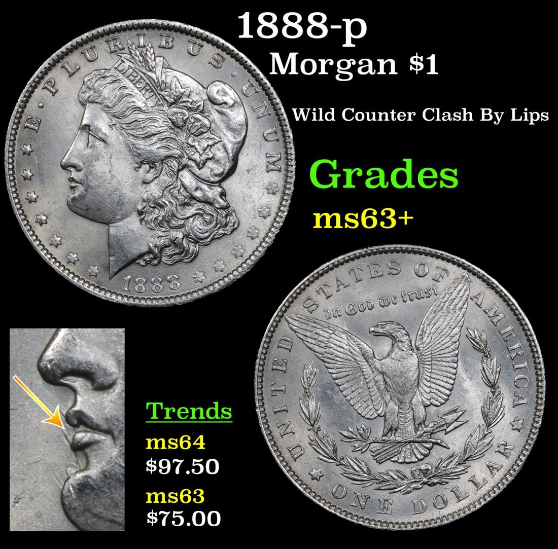1888-p Wild Counter Clash By Lips . Morgan Dollar $1 Grades Select+ Unc.