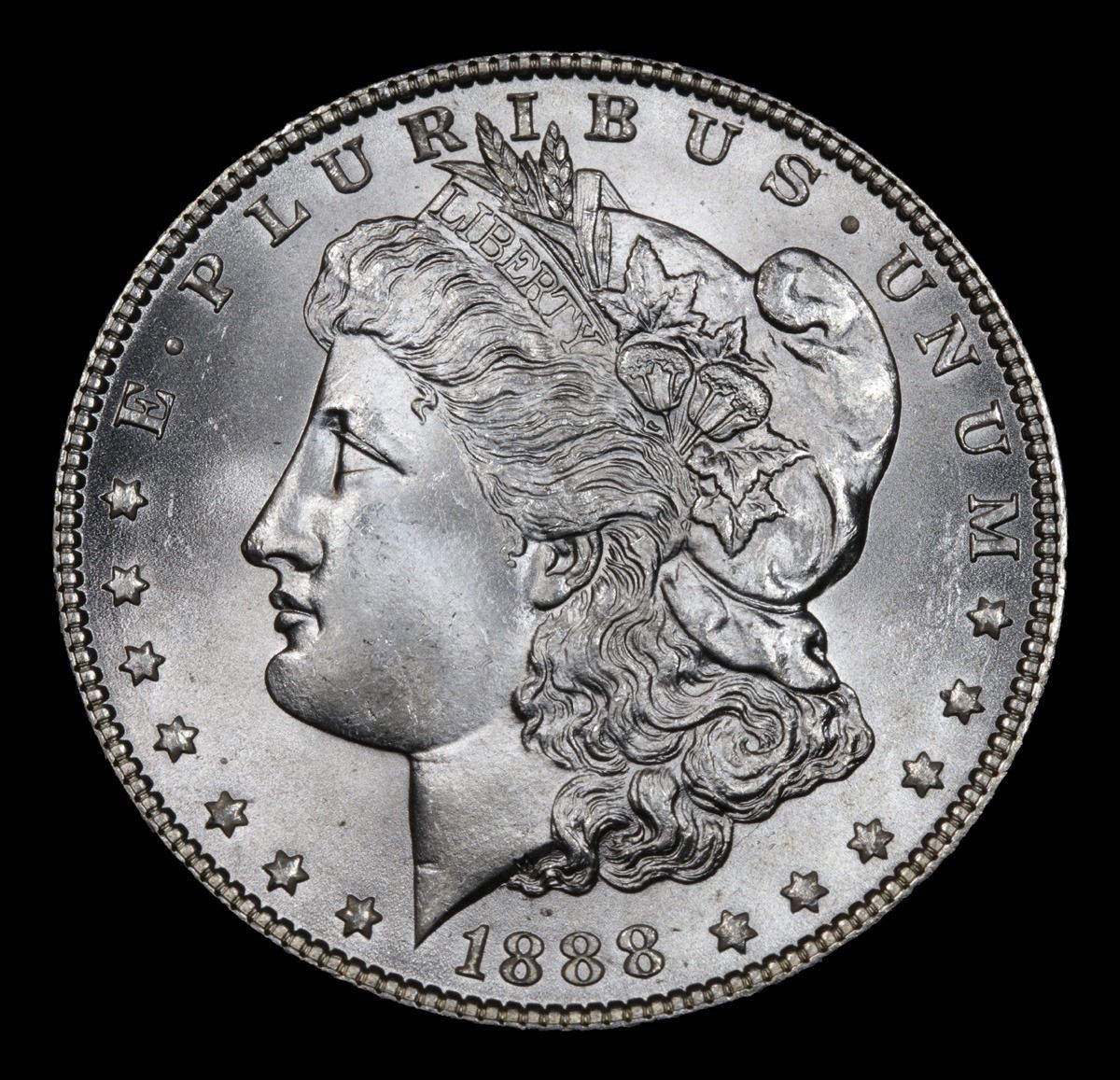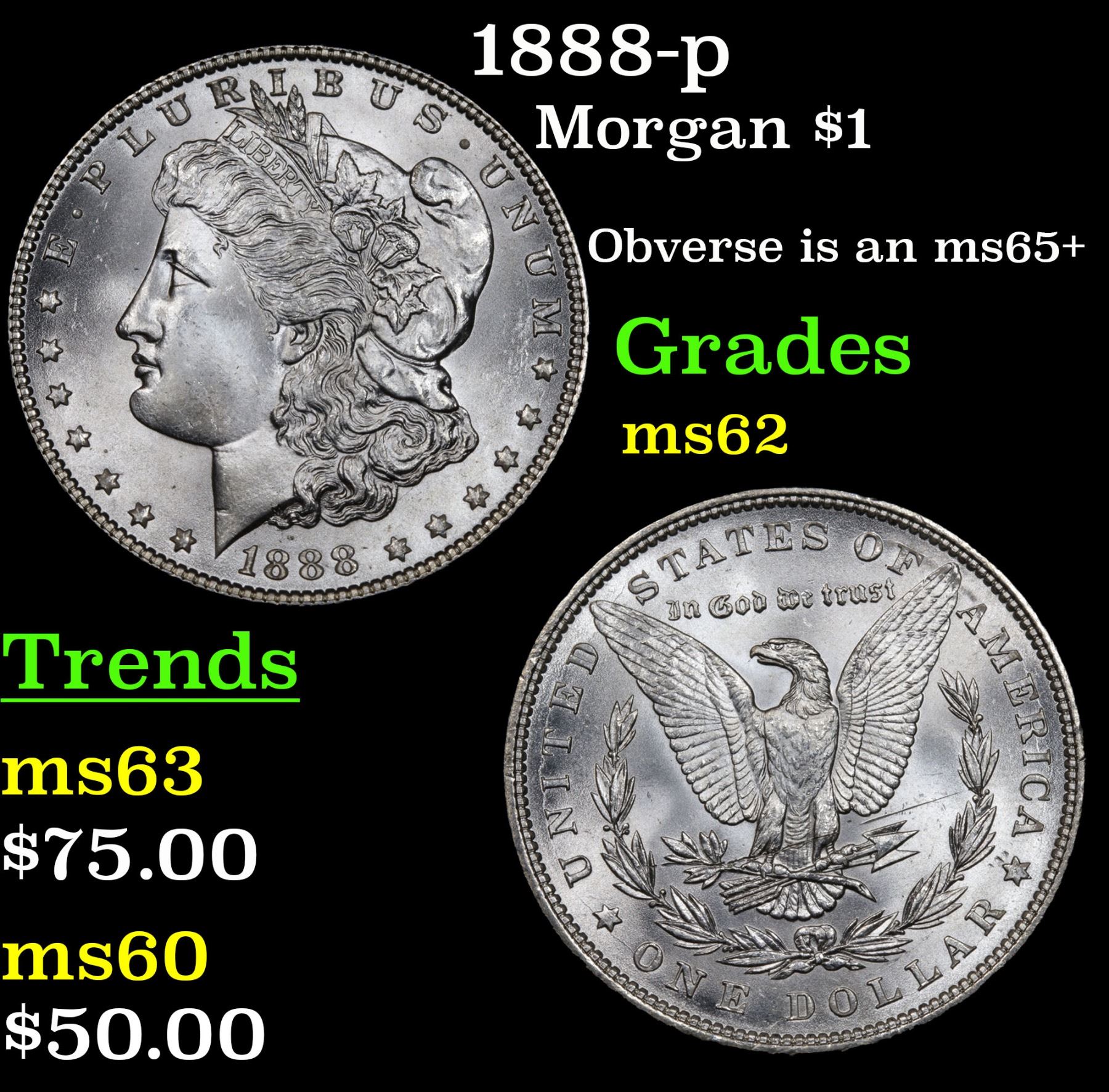 1888-p Obverse is an ms65+ . Morgan Dollar $1 Grades Select Unc.