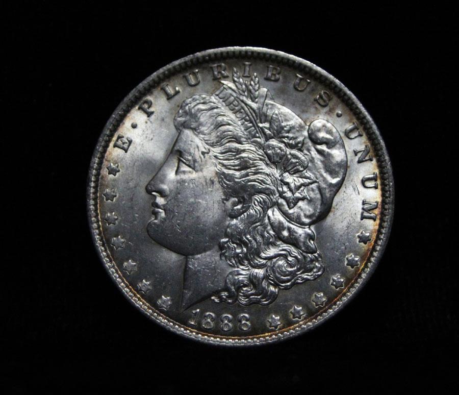 Nice original white example with some nice rim toning. A high end ms63. The Wholesale Greysheet lists ms63 at $68+. Estimated Value $75