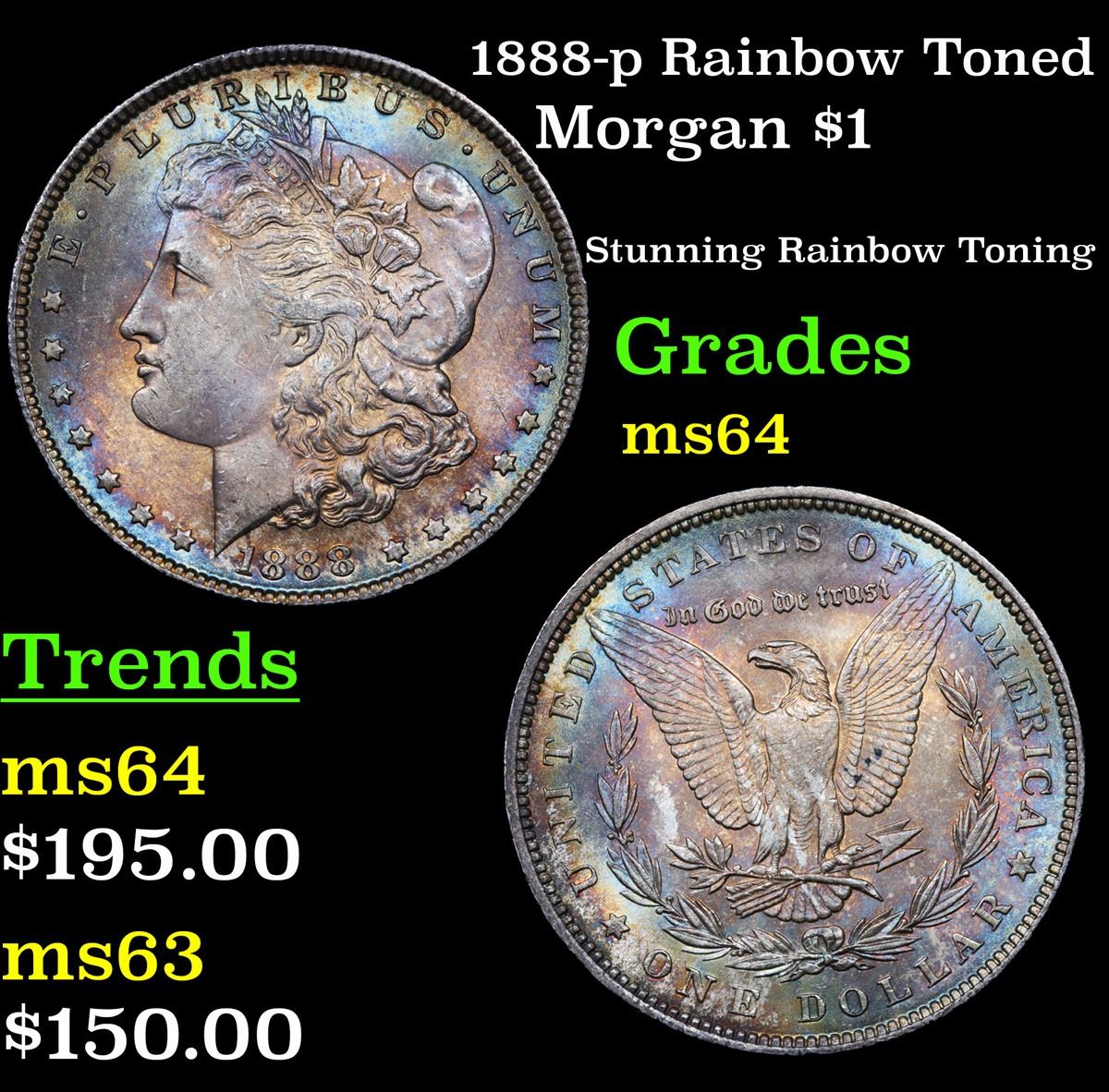 1888-p Rainbow Toned Morgan Dollar $1 Grades Choice Unc.