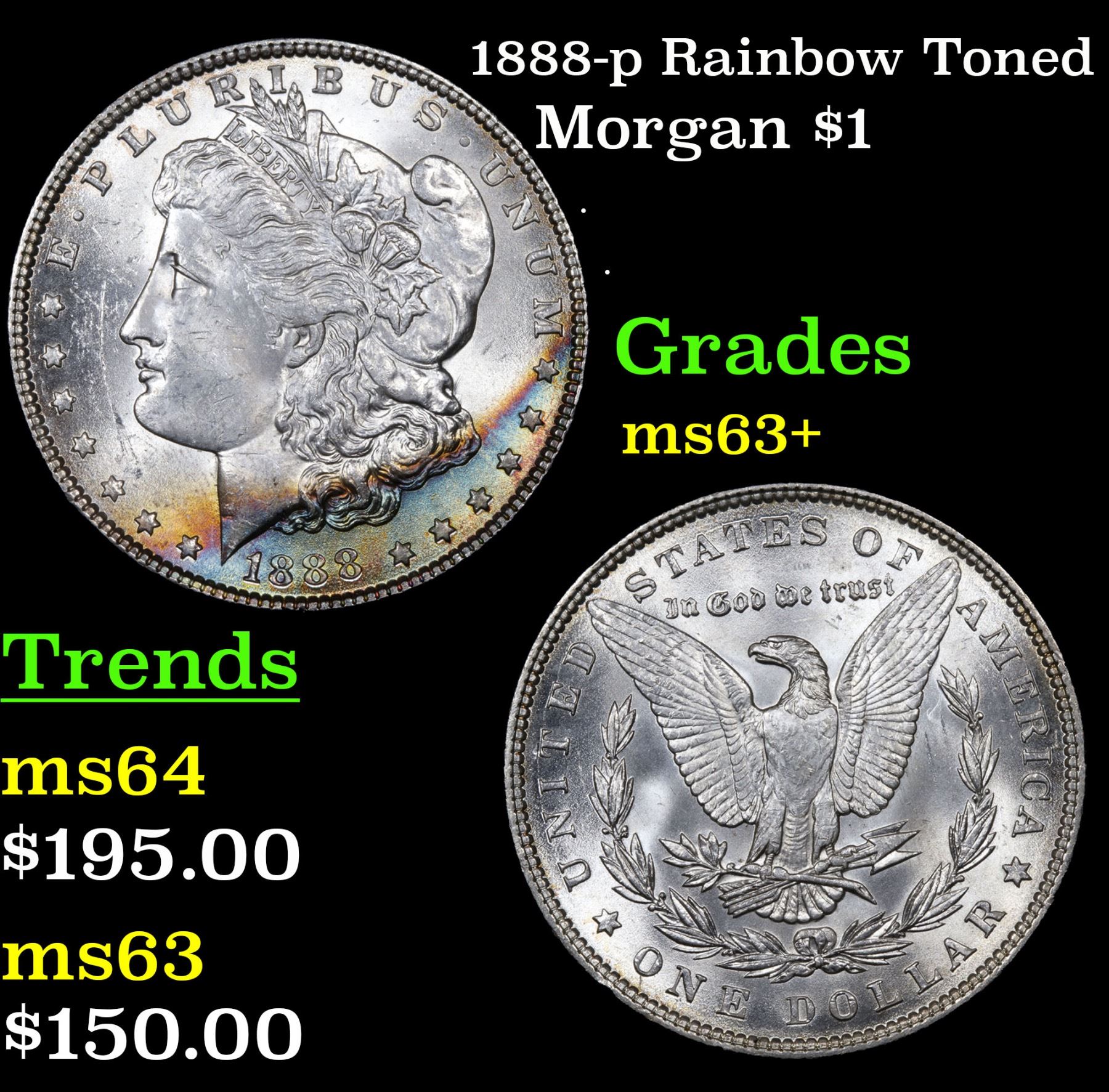 1888-p Rainbow Toned . . Morgan Dollar $1 Grades Select+ Unc.