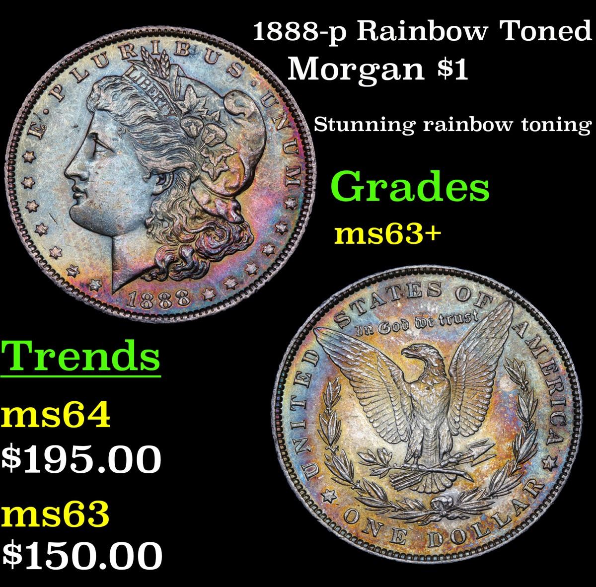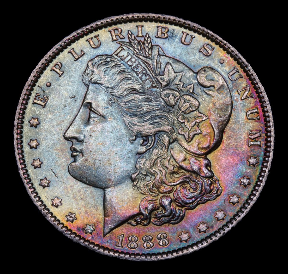 1888-p Rainbow Toned Morgan Dollar $1 Grades Select+ Unc.