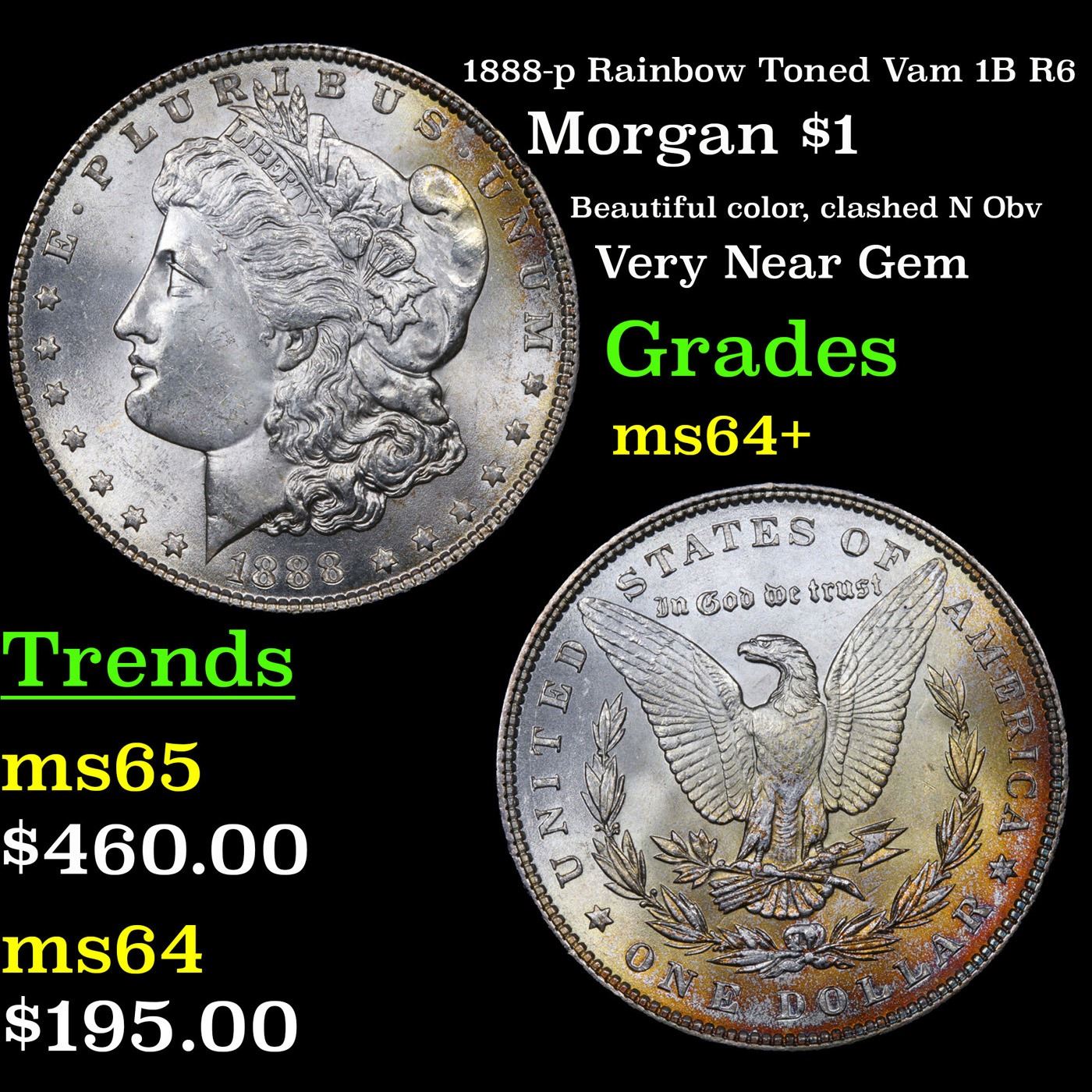 1888-p Rainbow Toned Vam 1B R6 Morgan Dollar $1 Grades Choice+ Unc.