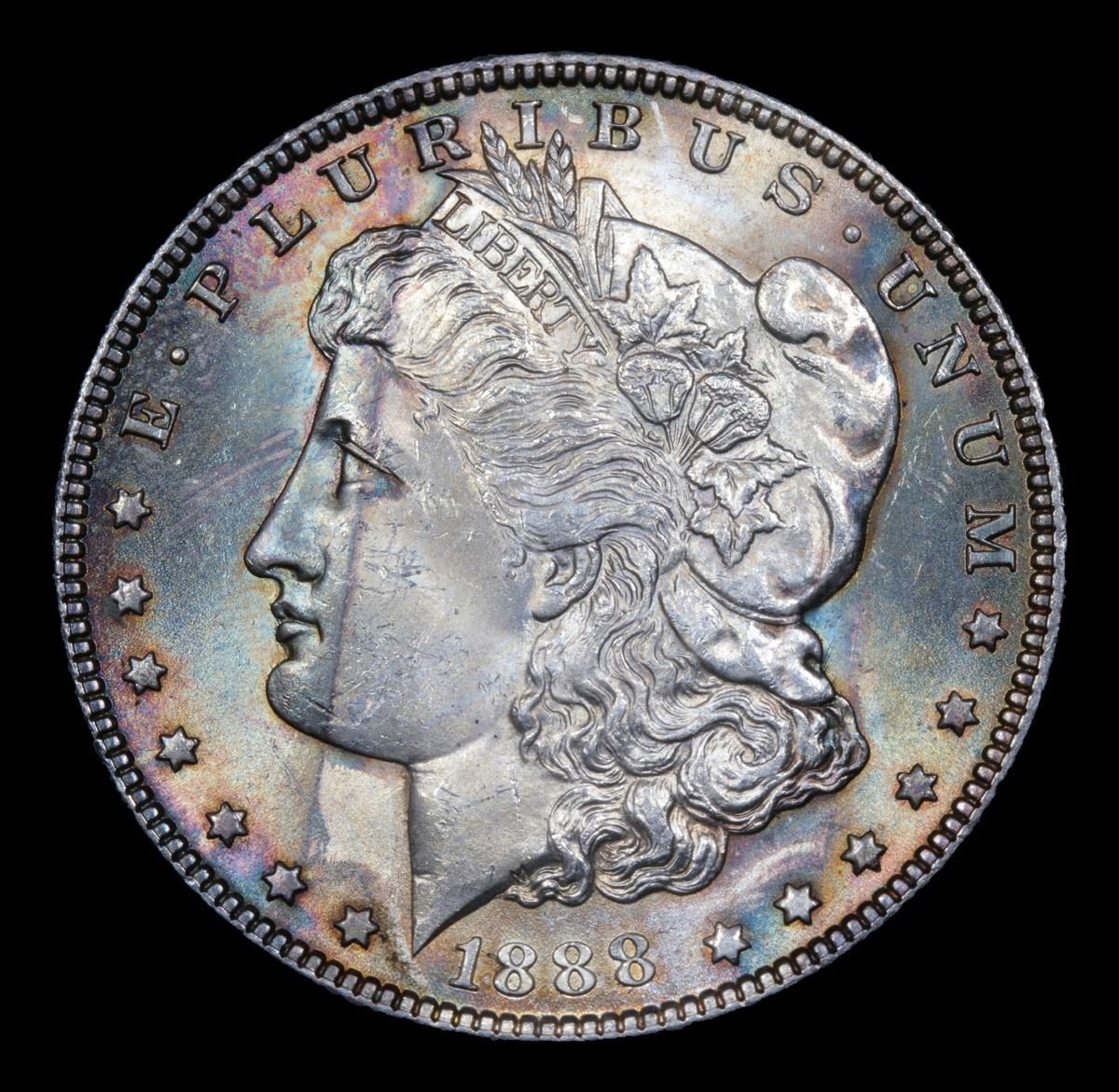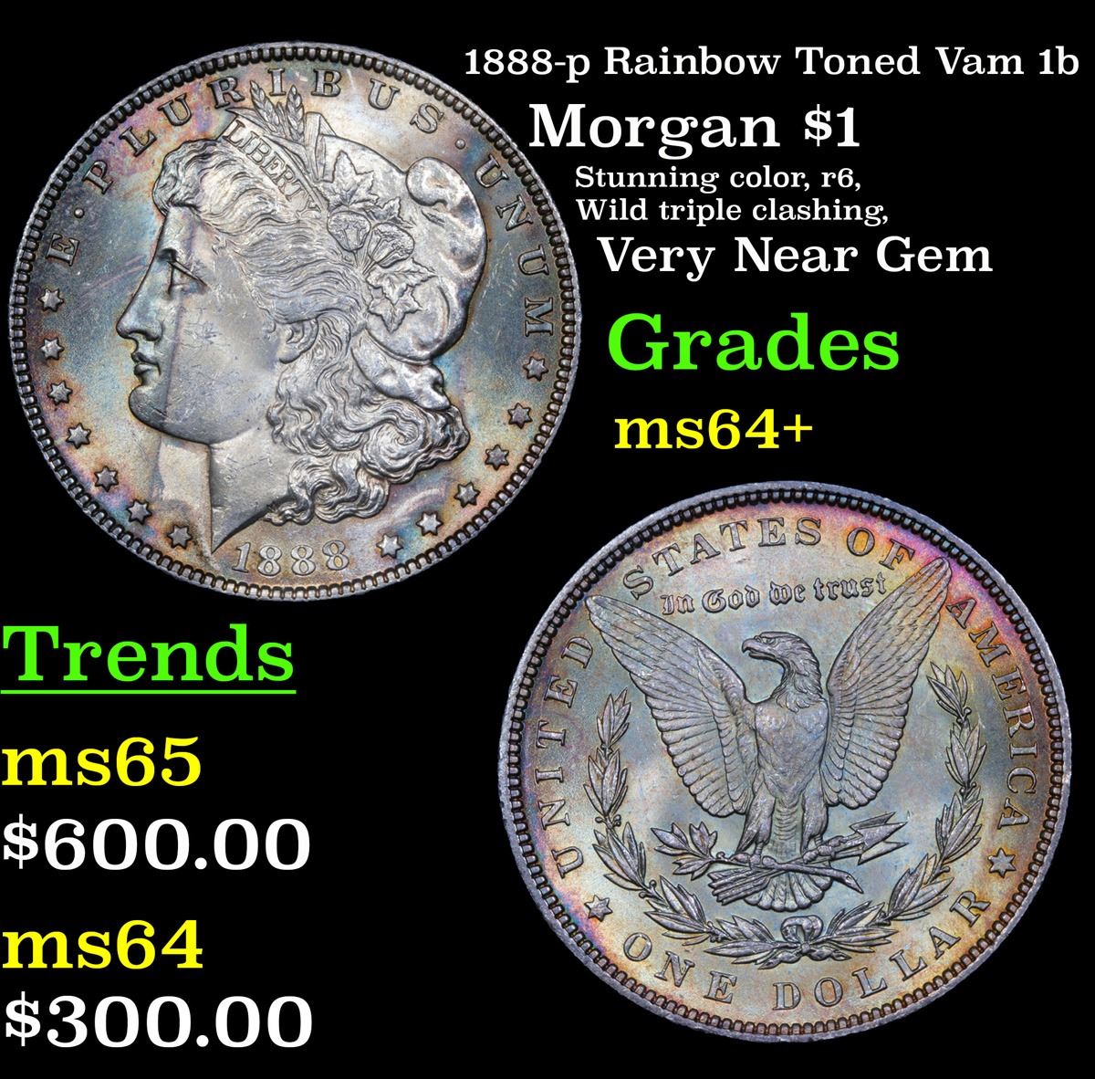1888-p Rainbow Toned Vam 1b Stunning color, r6, Wild triple clashing, Very Near Gem Morgan Dollar $1 Grades Choice+ Unc. A Corey's Pick, Bid to Win Coin