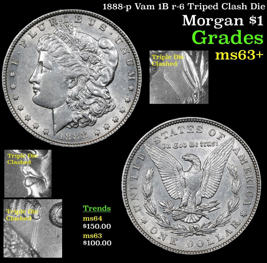 1888-p Vam 1B r-6 Triped Clash Die . . Morgan Dollar $1 Grades Select+ Unc.