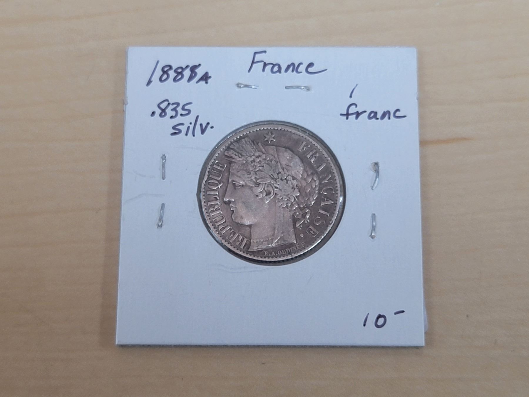 1888A France Silver 1 Franc