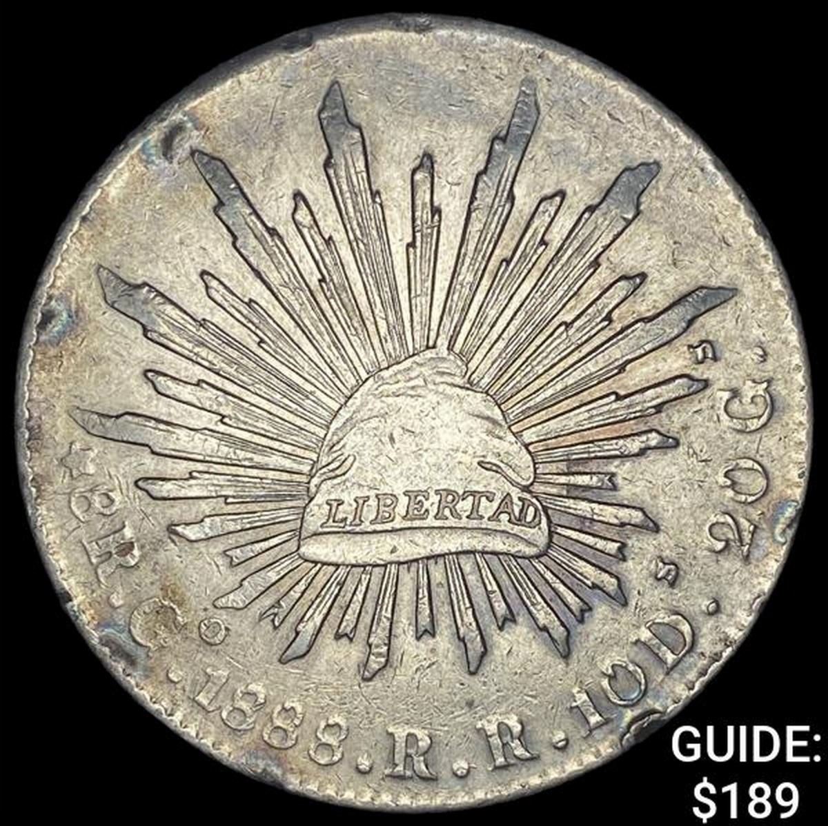 1888Go RR Mexico Silver 8 Reales Cap & Ray CLOSELY UNCIRCULATED