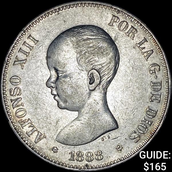 1888Mpm Spain Alfonso XIII 5 Pesetas CLOSELY UNCIRCULATED
