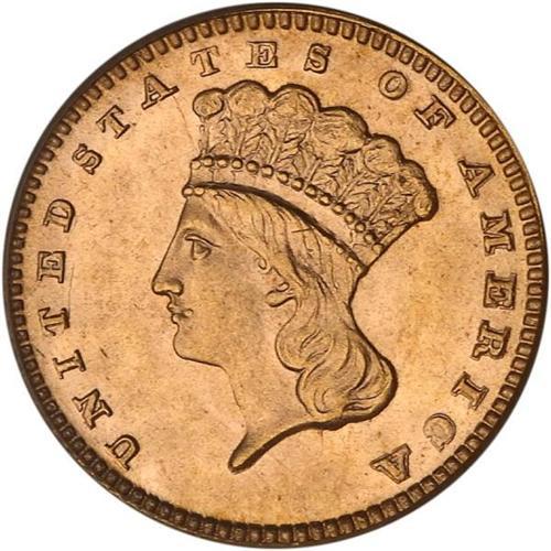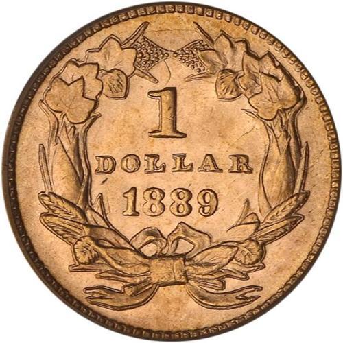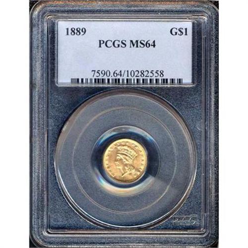 <b>1889 $1 Gold Indian. PCGS graded MS64.</b> Satin surfaces that are almost frosted with pleasant, glowing golden color <b>(PCGS # 7490)</b> <i>