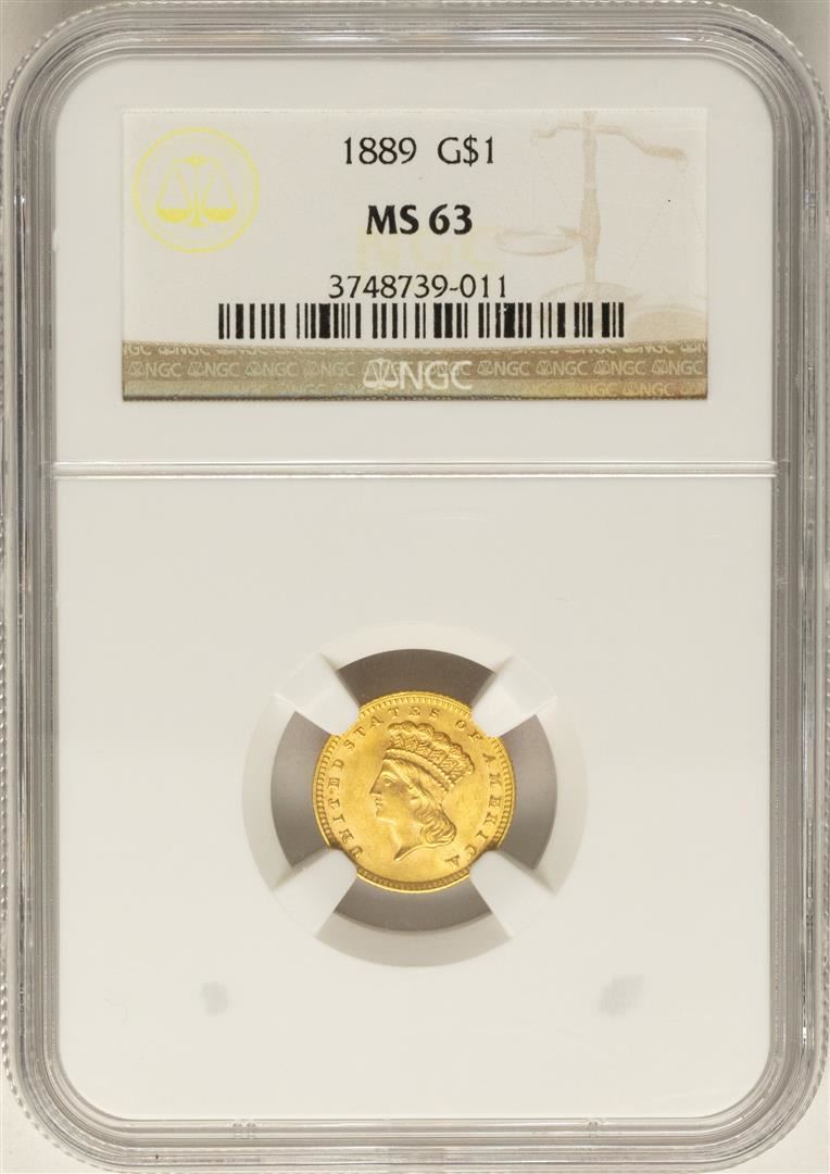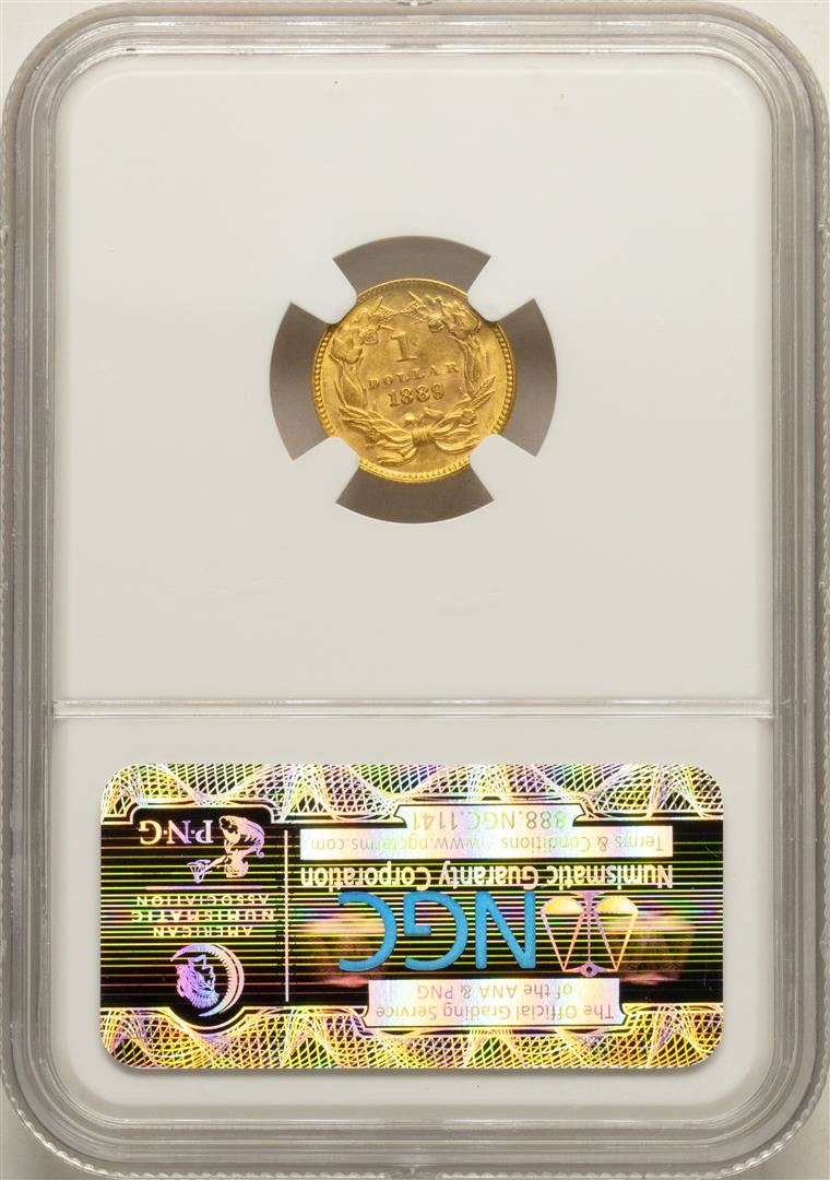 One 1889 $1 Indian Princess Head Gold Dollar Coin NGC MS63. NGC Certified.