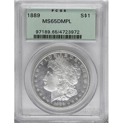 <B>1889 $1 MS65 Deep Mirror Prooflike PCGS.</B></I> This untoned Morgan dollar possesses smooth and flashy fields. The strike is crisp aside from the hair above the ear, and marks are limited to minor facial grazes. Certified in a green label holder. Population: 31 in 65, 3 finer (10/07).<BR><I>From The Mario Eller Collection, Part Two.</B></I><BR><BR><b>Shipping:</b> Coins & Currency (<a target="_blank" href="http://www.heritageauctions.com/common/shipping.php">view shipping information</a>)