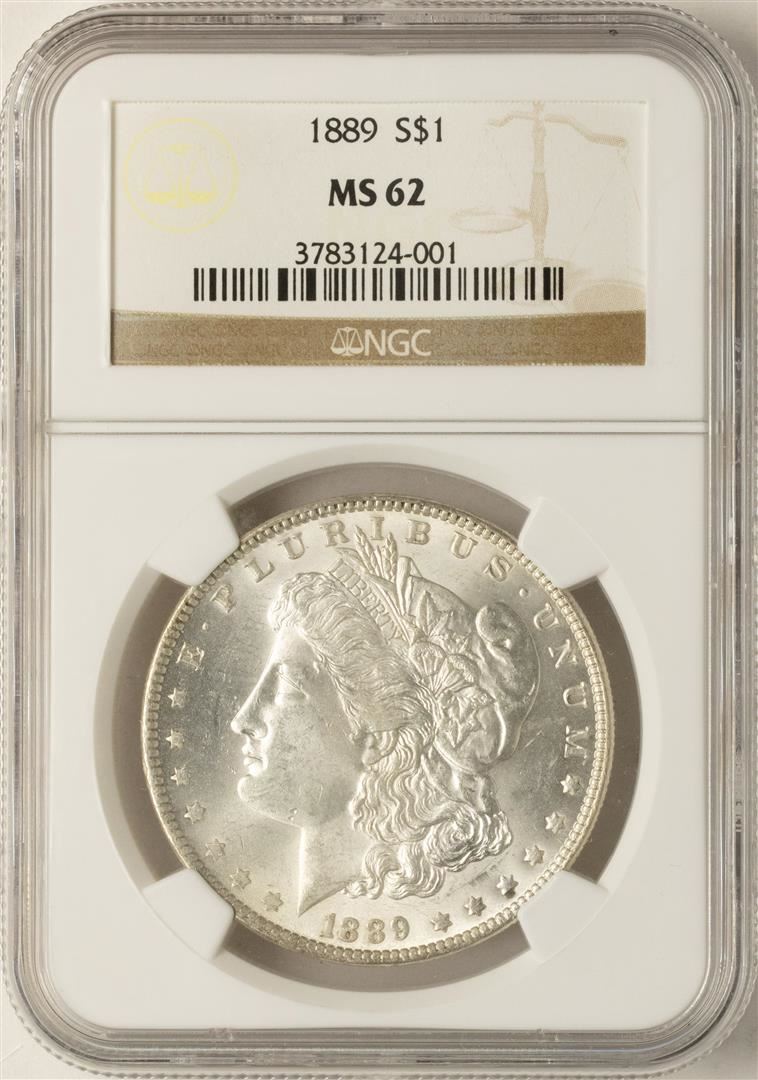 One 1889 $1 Morgan Silver Dollar Coin NGC MS62. NGC Certified.