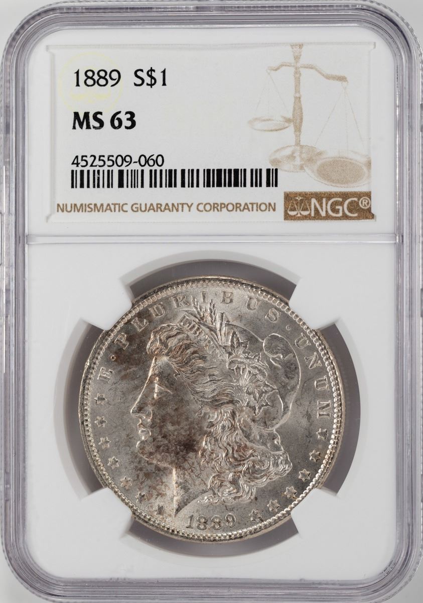 One 1889 $1 Morgan Silver Dollar Coin NGC MS63.