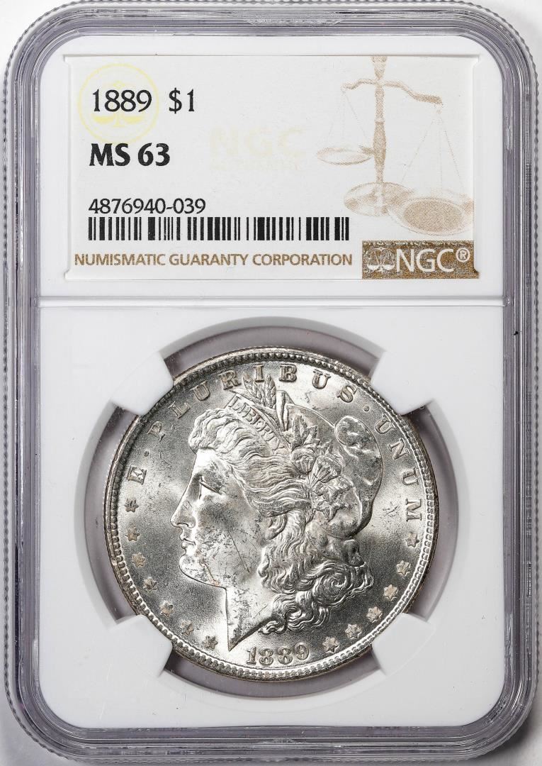 One 1889 $1 Morgan Silver Dollar Coin NGC MS63. NGC Certified.