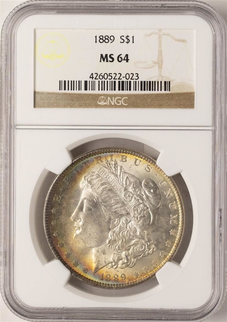 One 1889 $1 Morgan Silver Dollar Coin NGC MS64 Amazing Toning. NGC Certified.
