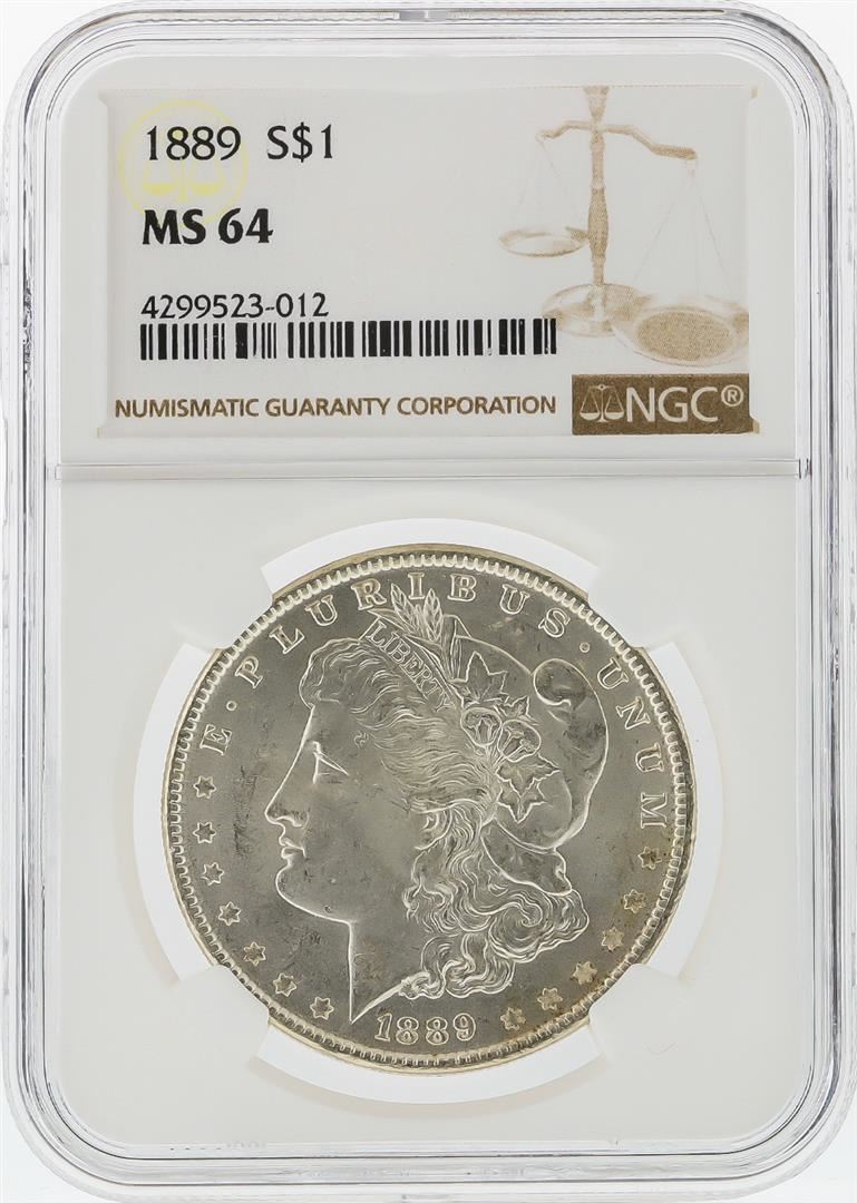 One 1889 $1 Morgan Silver Dollar Coin NGC MS64. NGC Certified.