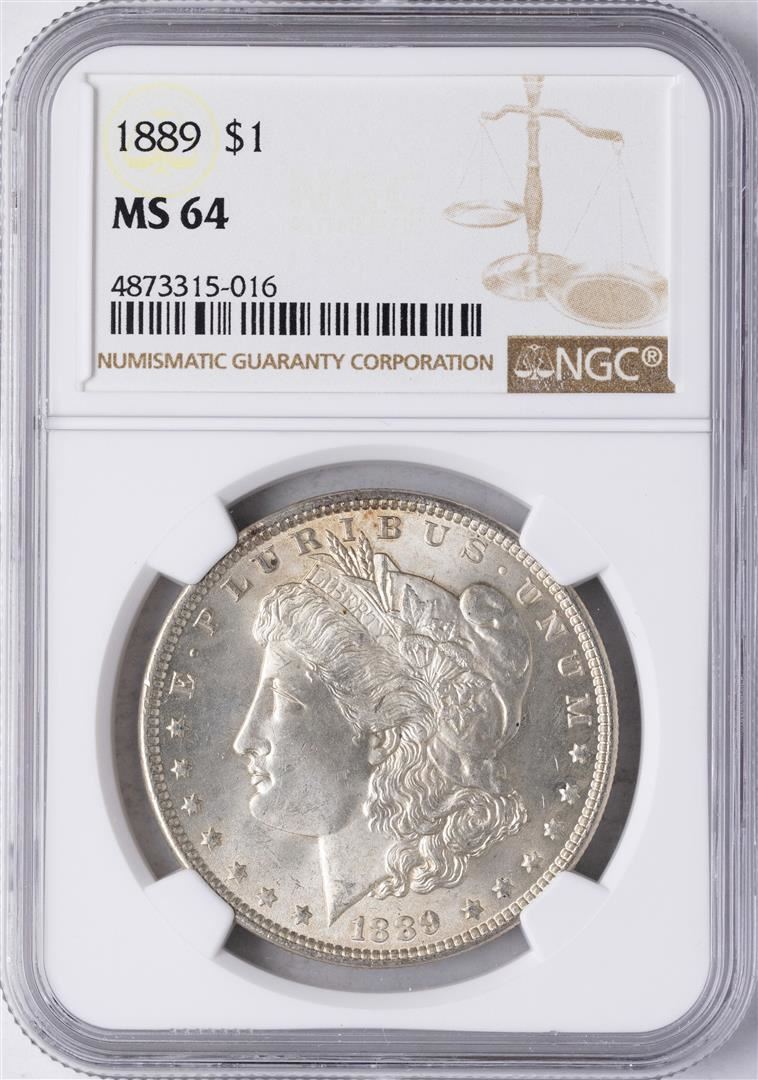 One 1889 $1 Morgan Silver Dollar Coin NGC MS64. NGC Certified.