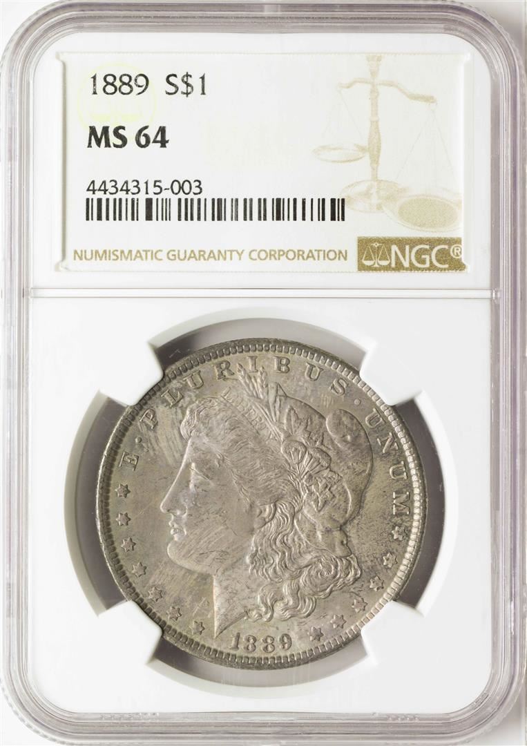 One 1889 $1 Morgan Silver Dollar Coin NGC MS64. NGC Certified.