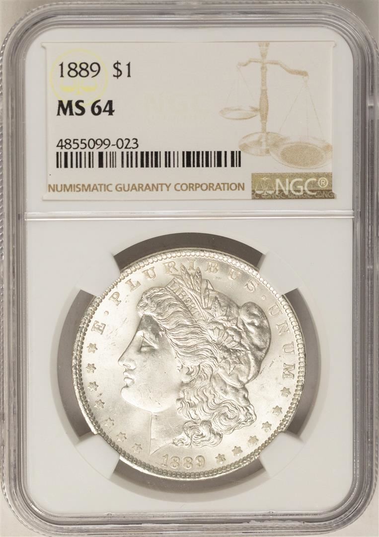 One 1889 $1 Morgan Silver Dollar Coin NGC MS64. NGC Certified.