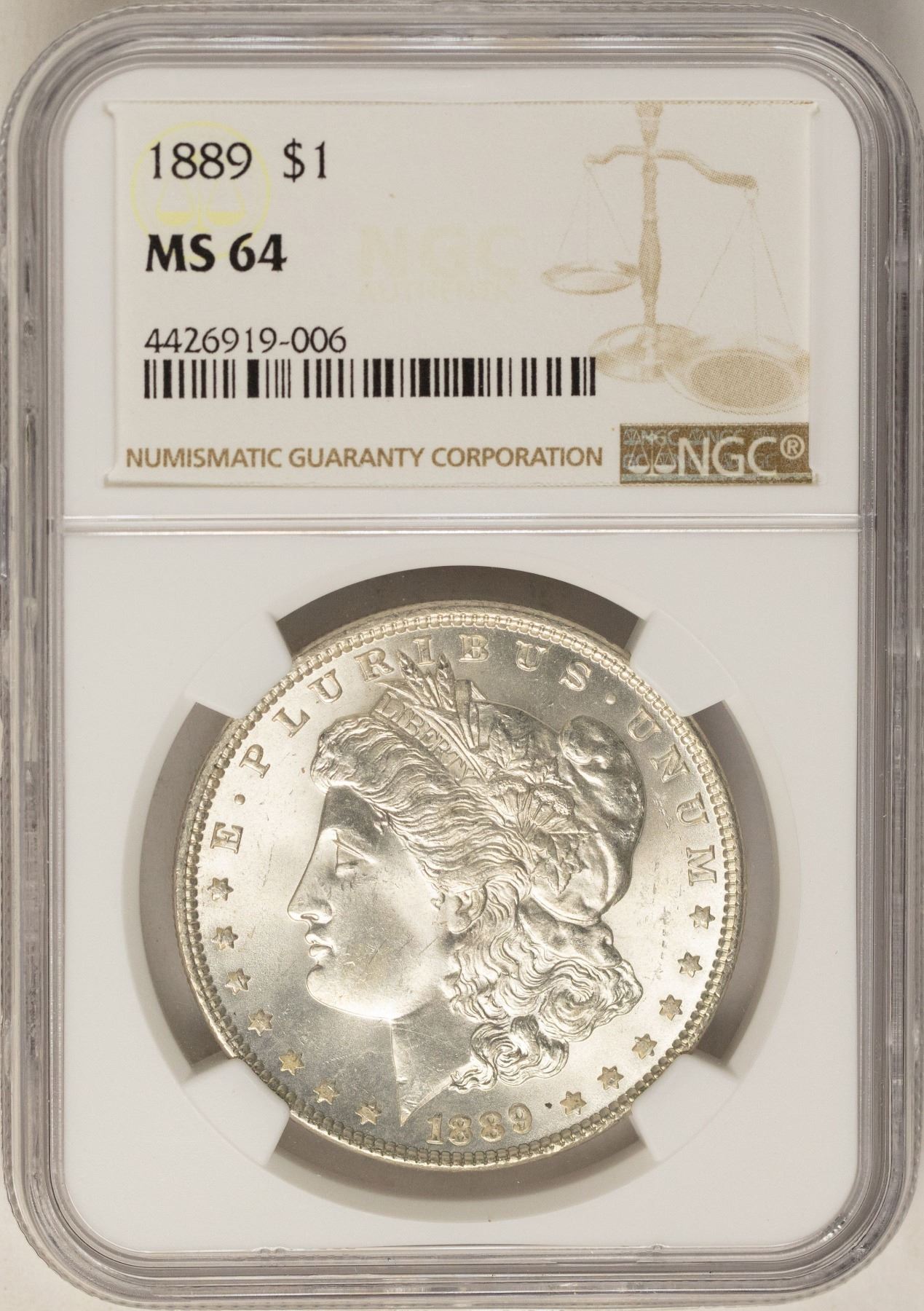 One 1889 $1 Morgan Silver Dollar Coin NGC MS64.