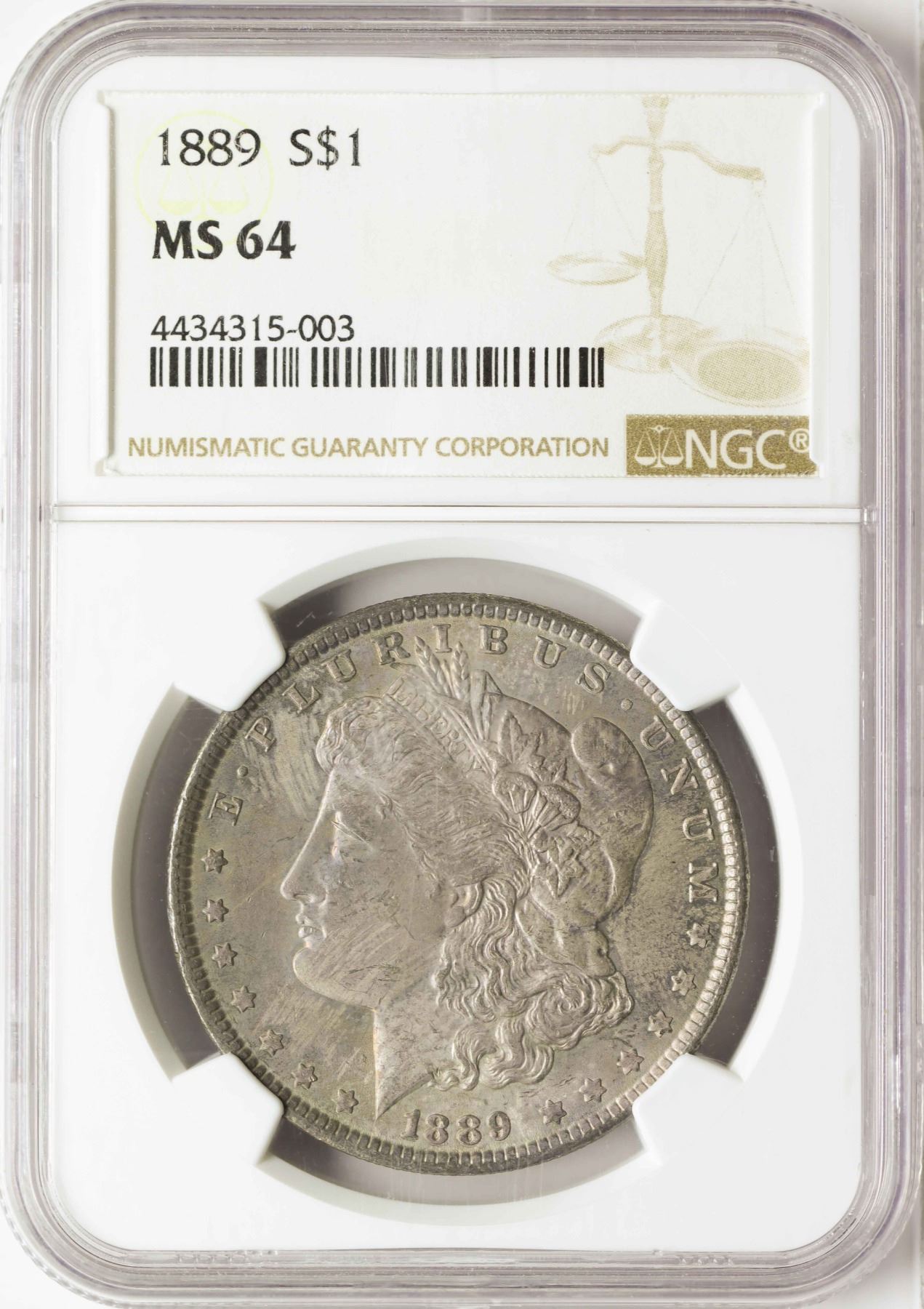 One 1889 $1 Morgan Silver Dollar Coin NGC MS64.