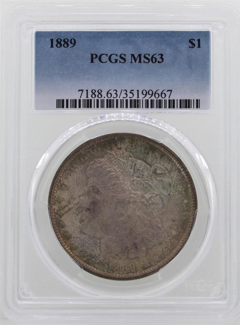 One 1889 $1 Morgan Silver Dollar Coin PCGS MS63 AMAZING TONING. PCGS Graded.