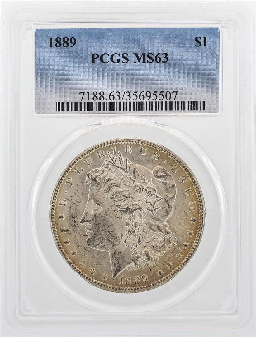 One 1889 $1 Morgan Silver Dollar Coin PCGS MS63. PCGS Graded.