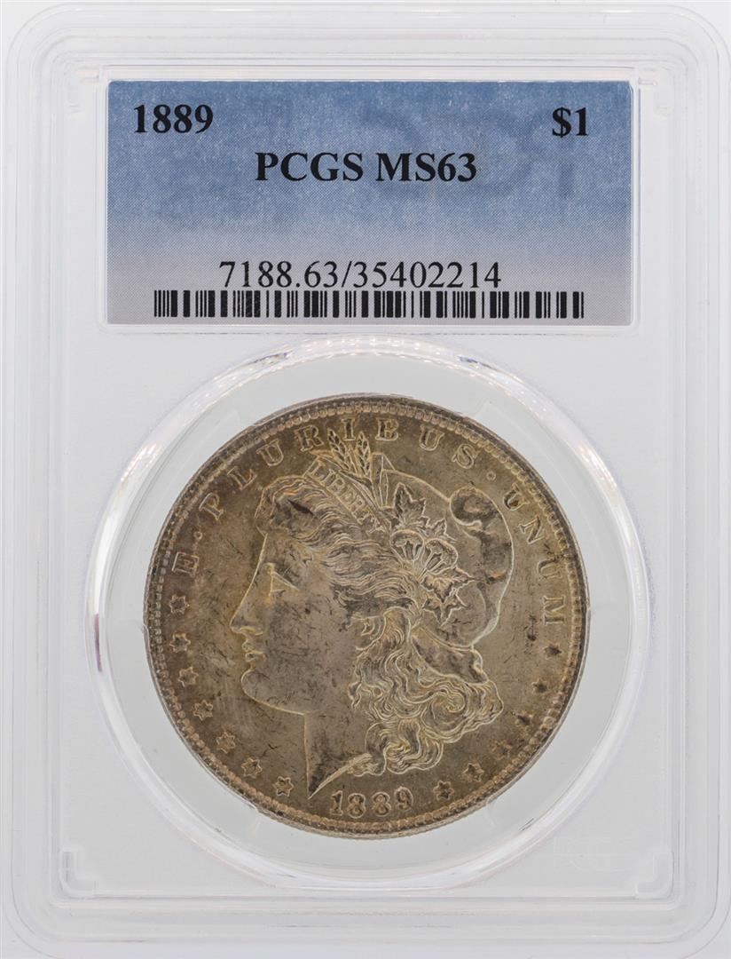 One 1889 $1 Morgan Silver Dollar Coin PCGS MS63. PCGS Graded.