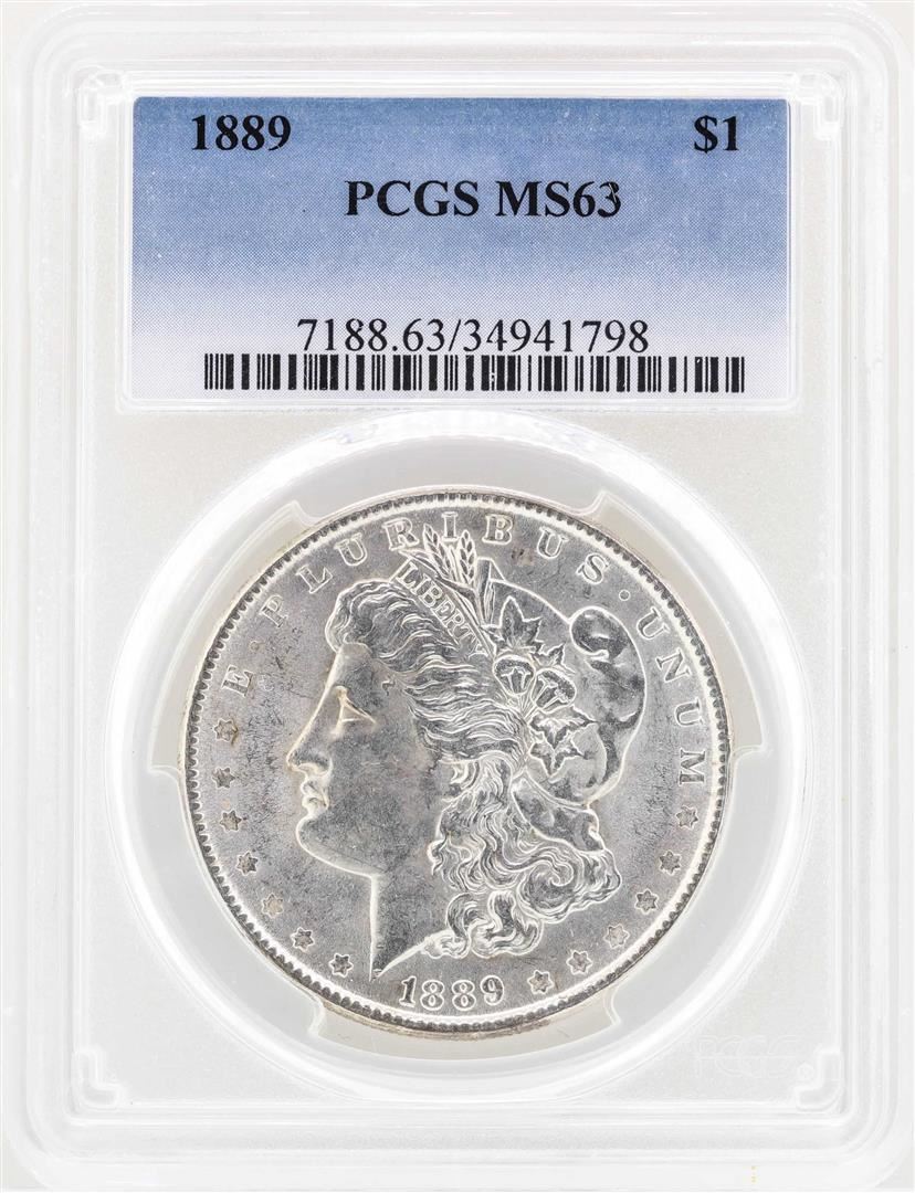 One 1889 $1 Morgan Silver Dollar Coin PCGS MS63. PCGS Graded.