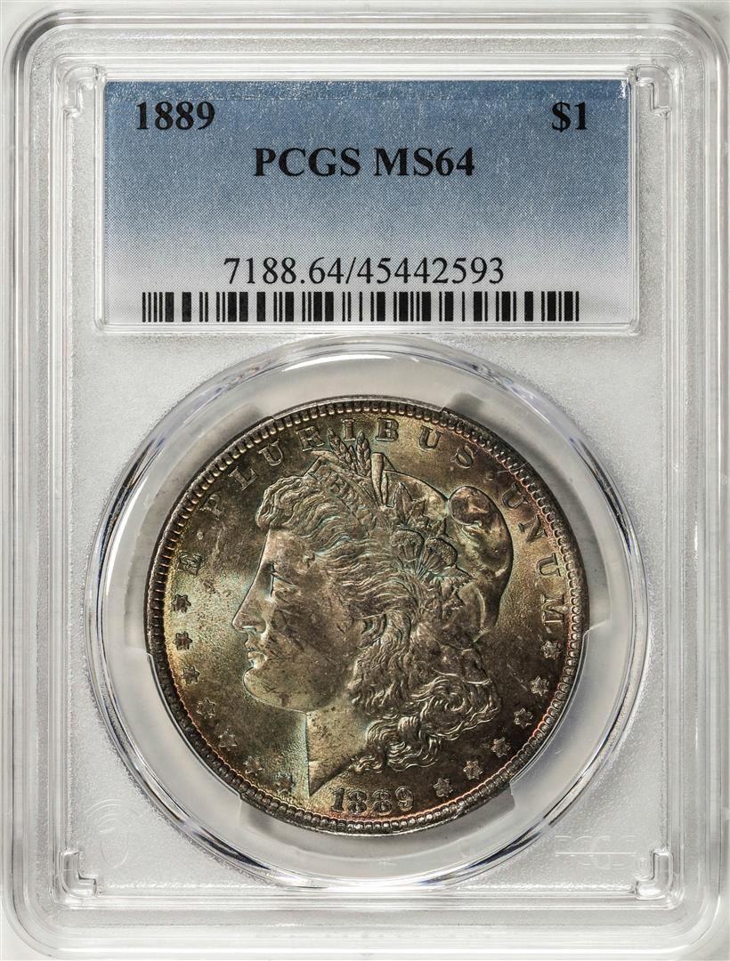 One 1889 $1 Morgan Silver Dollar Coin PCGS MS64 Nice Toning. PCGS Graded.