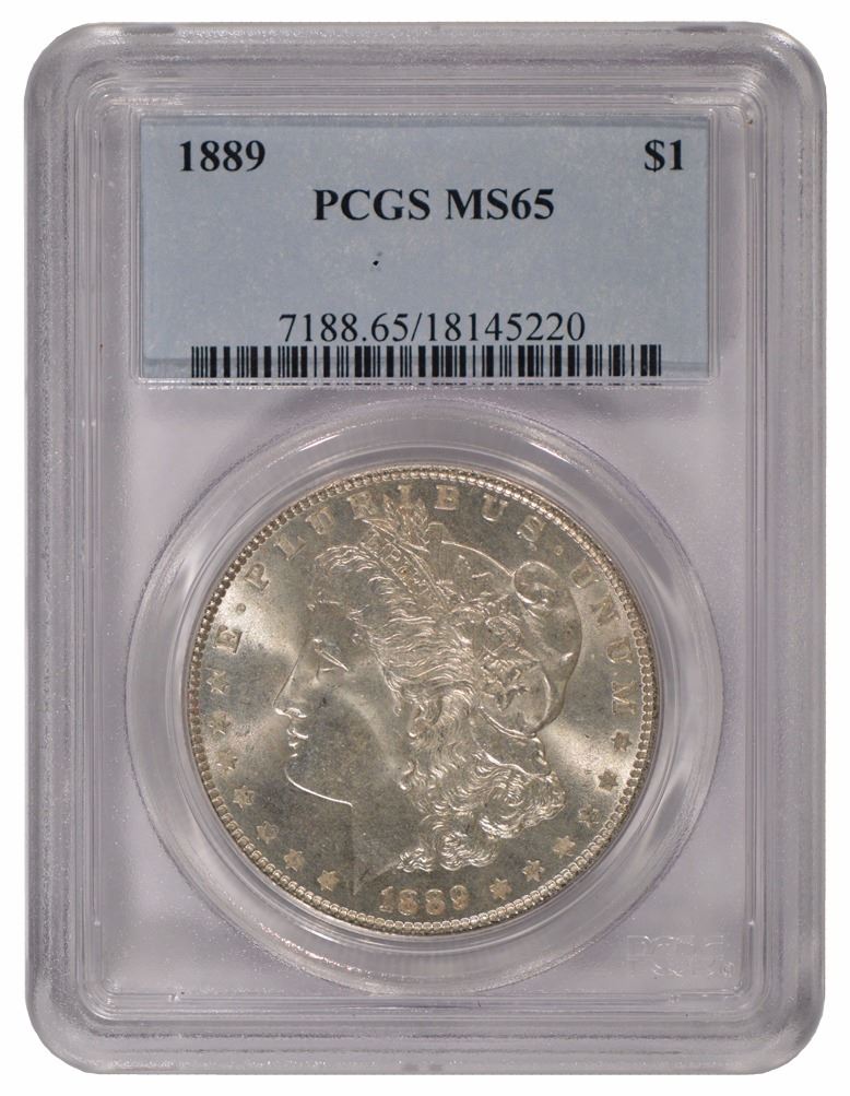 One 1889 $1 Morgan Silver Dollar Coin PCGS MS65.