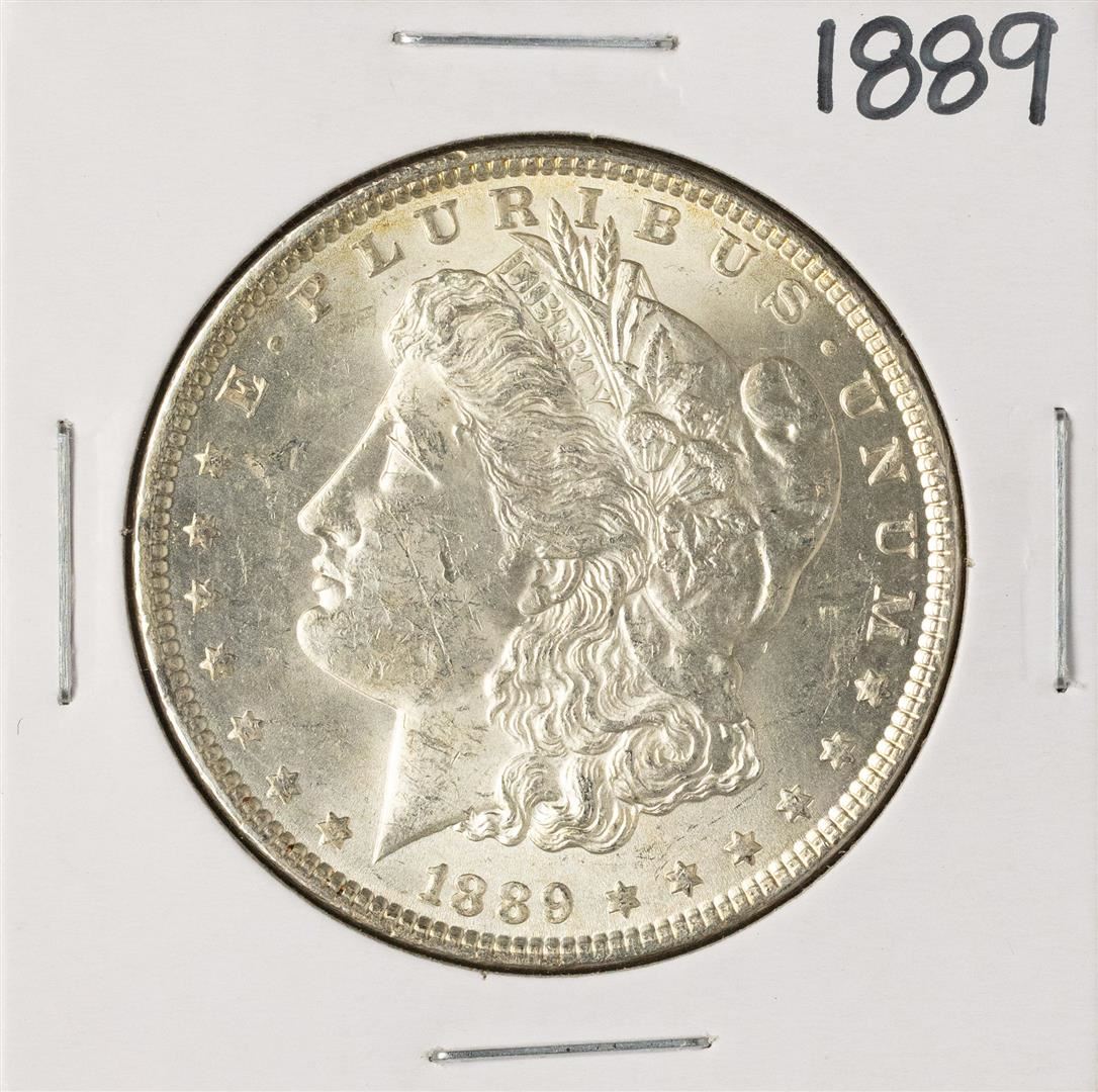 One 1889 $1 Morgan Silver Dollar Coin.