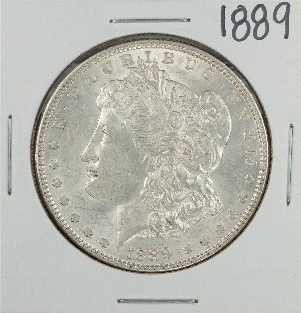 One 1889 $1 Morgan Silver Dollar Coin.