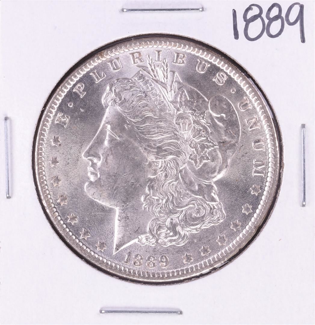 One 1889 $1 Morgan Silver Dollar Coin.
