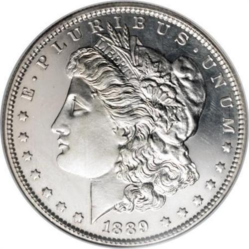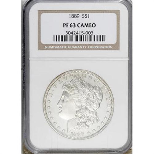 <B>1889 $1 PR63 Cameo NGC.</B></I> This is a marvelous Select Cameo with completely untoned surfaces that exhibit exquisitely impressed design elements, as apparent by complete definition in the hair over Liberty's ear and on the eagle's breast feathers. Some faint slide marks on the cheek are the only factor standing in the way of a higher grade. A few vertical hairthin scratches on the front of the slab should not be confused with marks on the coin.<BR><BR><b>Shipping:</b> Coins & Currency (<a target="_blank" href="http://www.heritageauctions.com/common/shipping.php">view shipping information</a>)