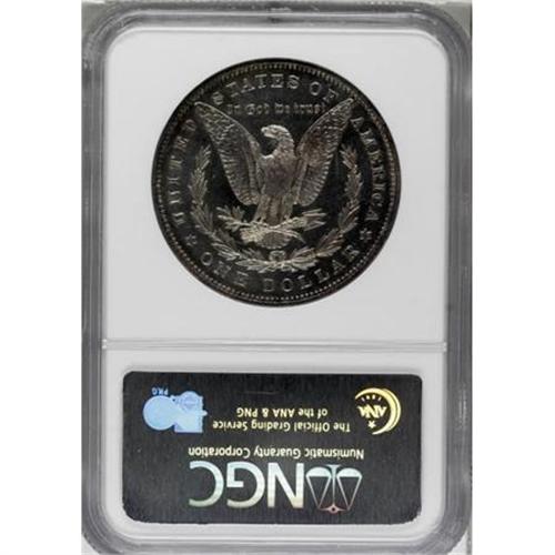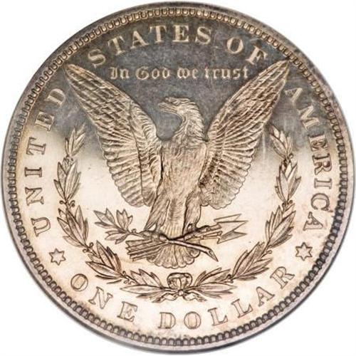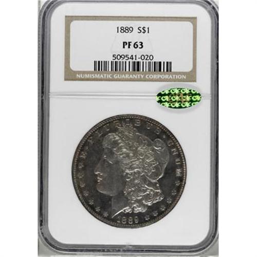 <B>1889 $1 PR63 NGC. CAC.</B></I> 1889 proof dollars usually come with flatness in the central areas (David Bowers, 2007). Not so this coin! A solid strike leaves sharp delineation throughout, including the hair over Liberty's ear and the eagle's breast feathers. Moreover, some field-motif contrast is visible, another characteristic usually lacking from this issue. Whispers of milky-purple color concentrate at the margins.<BR><I>From The Queller Family Collection of Silver Dollars.</B></I><BR><BR><B>Coin Engraver:</B> George T. Morgan<BR><BR><b>Shipping:</b> Coins & Currency (<a target="_blank" href="http://www.heritageauctions.com/common/shipping.php">view shipping information</a>)