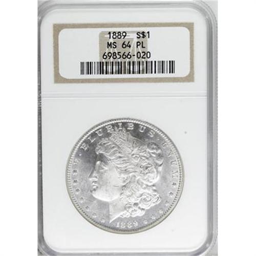 <B>1889 $1 MS64 Prooflike NGC.</B></I> NGC Census: (110/29). PCGS Population (63/21). Numismedia Wsl. Price for NGC/PCGS coin in MS64: $220. (#7189)<BR><I>From The Diamond Head Collection.</B></I><BR><BR><B>Coin Engraver:</B> George T. Morgan<BR><BR><b>Shipping:</b> Coins & Currency (<a target="_blank" href="http://www.heritageauctions.com/common/shipping.php">view shipping information</a>\)