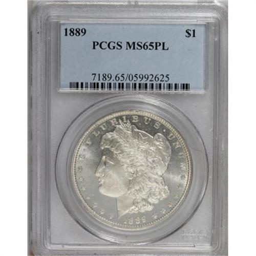 <B>1889 $1 MS65 Prooflike PCGS.</B></I> PCGS Population (21/1). NGC Census: (27/2). Numismedia Wsl. Price for NGC/PCGS coin in MS65: $900. (#7189)<BR><BR><B>Coin Engraver:</B> George T. Morgan<BR><BR><b>Shipping:</b> Coins & Currency (<a target="_blank" href="http://www.heritageauctions.com/common/shipping.php">view shipping information</a>)