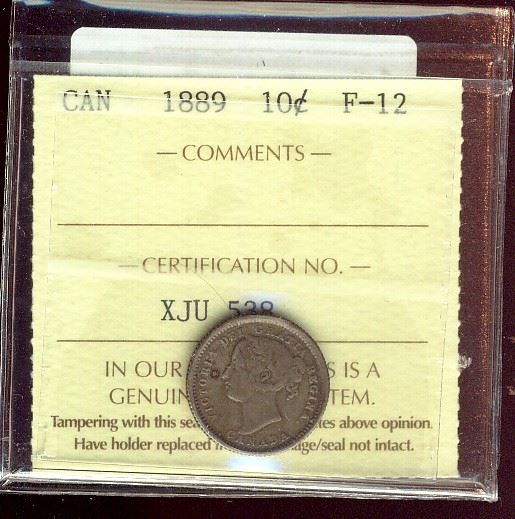 1889 10¢ ICCS F12. Key issue, deep greyish tones.