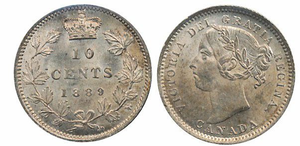 1889 10¢ ICCS MS65. An absolute killer of a coin. A super tough key date issue in top condition. A must have for the best of collections. Excessively rare.